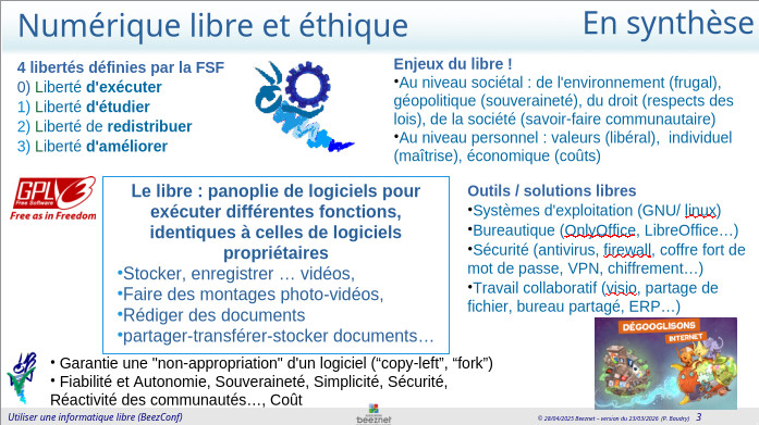 – 14mn10 L’alternative du logiciel libre (système d’exploitation, bureautique, sécurité, travail collaboration, IA générative…) et solutions Beeznet proposées